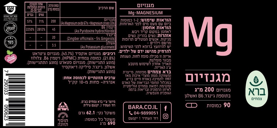 המגנזיום הינו מינרל חשוב ביותר בגוף האדם ומשמש כאבן יסוד חיונית למעל 300 תהליכים ביוכימיים בגוף. המגנזיום הכרחי לפעילות התקינה של מערכות הגוף השונות, ביניהן מערכת הלב וכלי הדם, מערכת העצבים, העצמות והשרירים, מערכת החיסון ועוד. מרבית האוכלוסייה בעולם המערבי אינה צורכת כמות מספקת של מגנזיום מסיבות שונות, בין השאר: צריכת מזון מעובד, תזונה לא מגוונת, מחסור במגנזיום במי השתייה, בעיות ספיגה עקב מחלות או נטייה גנטית, פעילות ספורטיבית עצימה, ובשל נטילת תרופות שונות הפוגעות בספיגת המגנזיום. המגנזיום של ברא הינו חלק מסדרת ה-Wise blend – שילוב חכם וייחודי של שני סוגי מגנזיום להגברת הזמינות הביולוגית, בתוספת ויטמינים, מינרלים וצמחי מרפא, המוסיפים מגוון של רכיבים המקיימים ביניהם יחסי גומלין ומעצימים את המוצר.