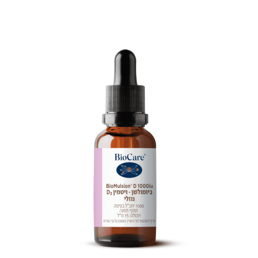 ויטמין D3 של חברת BioCare מוגש בצורת אמולסיה לספיגה אופטימלית.