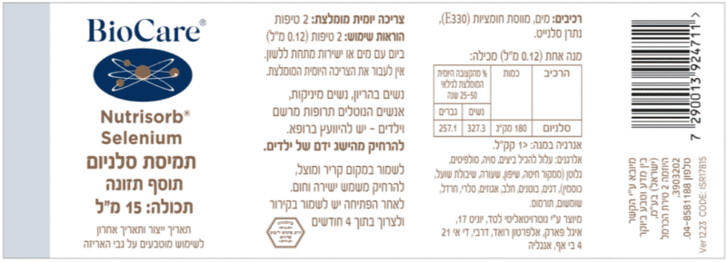 אופן שימוש: 2 טיפות (0.12 מ״ל) ביום עם מים או ישירות מתחת ללשון. אין לעבור את הצריכה היומית המומלצת.