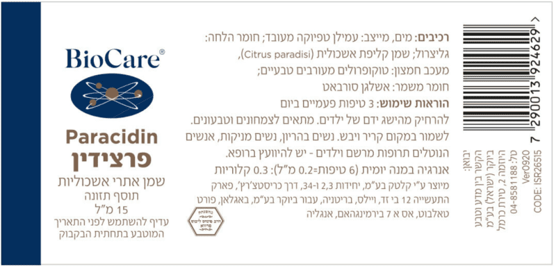 אופן שימוש : 3 טיפות, פעמיים ביום.