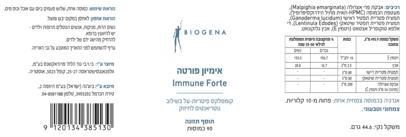 מכילה מיצוי פטריות מרפא: תמצית ריישי, תמצית שיטאקי. אבקת מיץ אסרולה, מיצוי פרי
