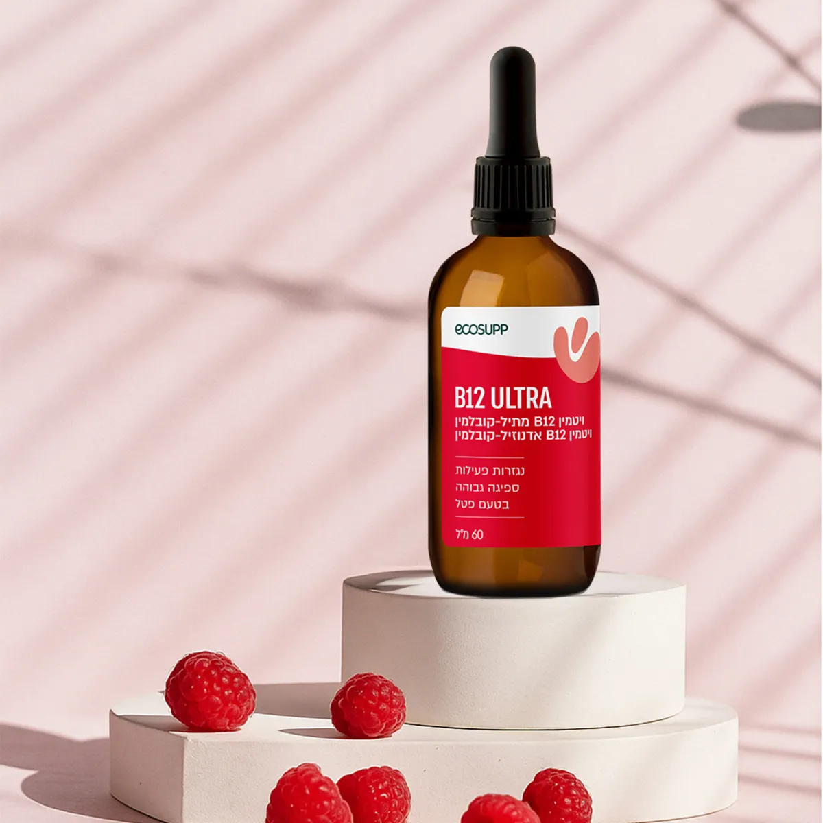 ויטמין B12 חיוני לתפקוד תקין של הגוף, אך רמותיו יורדות באופן טבעי עם הגיל וספיגתו במערכת העיכול הופכת מאתגרת יותר. מחסור בויטמין זה עלול להשפיע על מגוון מערכות, כולל רמות האנרגיה ותפקוד מערכת העצבים. B12 חשוב במיוחד לצמחונים וטבעונים שצריכתם מוגבלת, למבוגרים מעל גיל 50 שיכולת הספיגה שלהם פוחתת, לספורטאים הזקוקים לאנרגיה מוגברת, ולאנשים החווים עומס או מתח מוגבר.