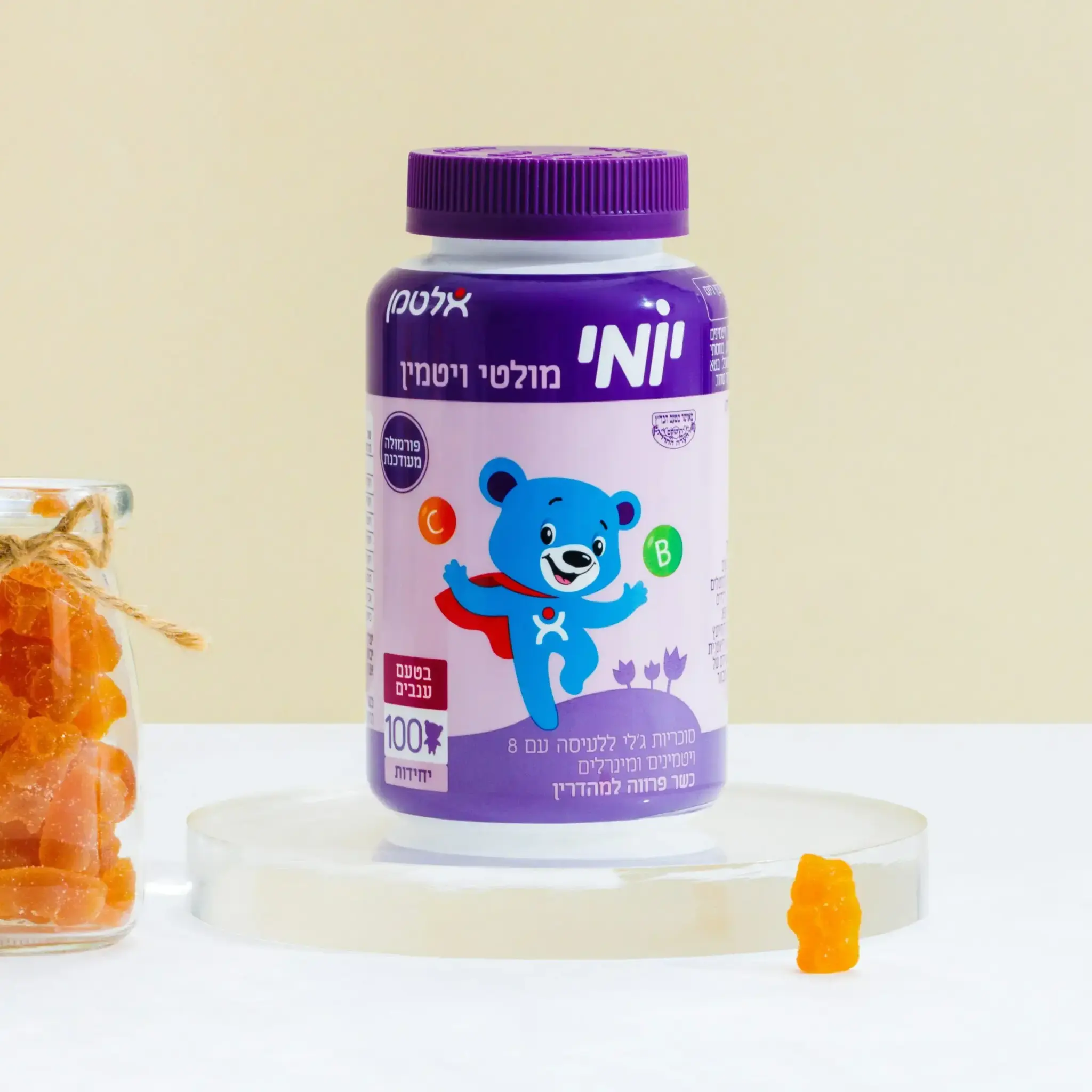 יומי היא סדרת תוספי תזונה שפותחה במיוחד עבור ילדים בגילאים שונים ולמצבי חיים יומיים שונים. סוכריות ג’לי עם 8 ויטמינים ומינרלים בטעם ענבים ללא חומרים משמרים וללא גלוטן טבעוני.
