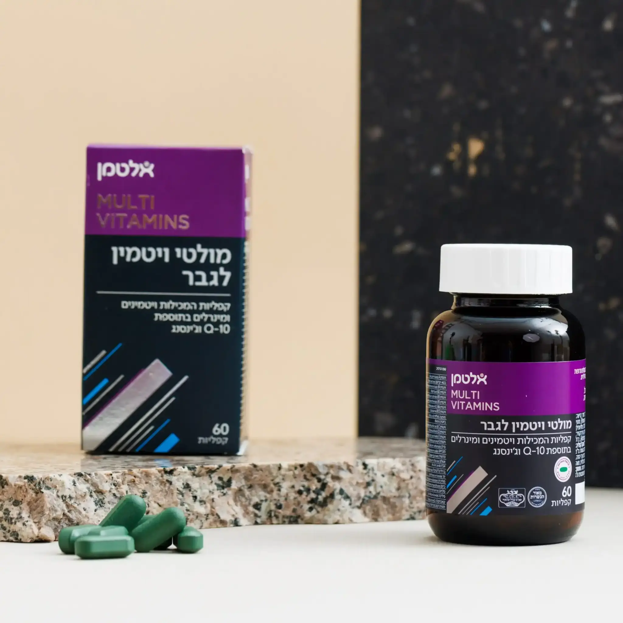 מולטי ויטמין עם פורמולה שפותחה במיוחד עבור גברים, בתוספת קו אנזים Q-10 וג’ינסנג. להשלמה תזונתית המסייעת בשמירה על חיוניות, בריאות ואנרגיה!