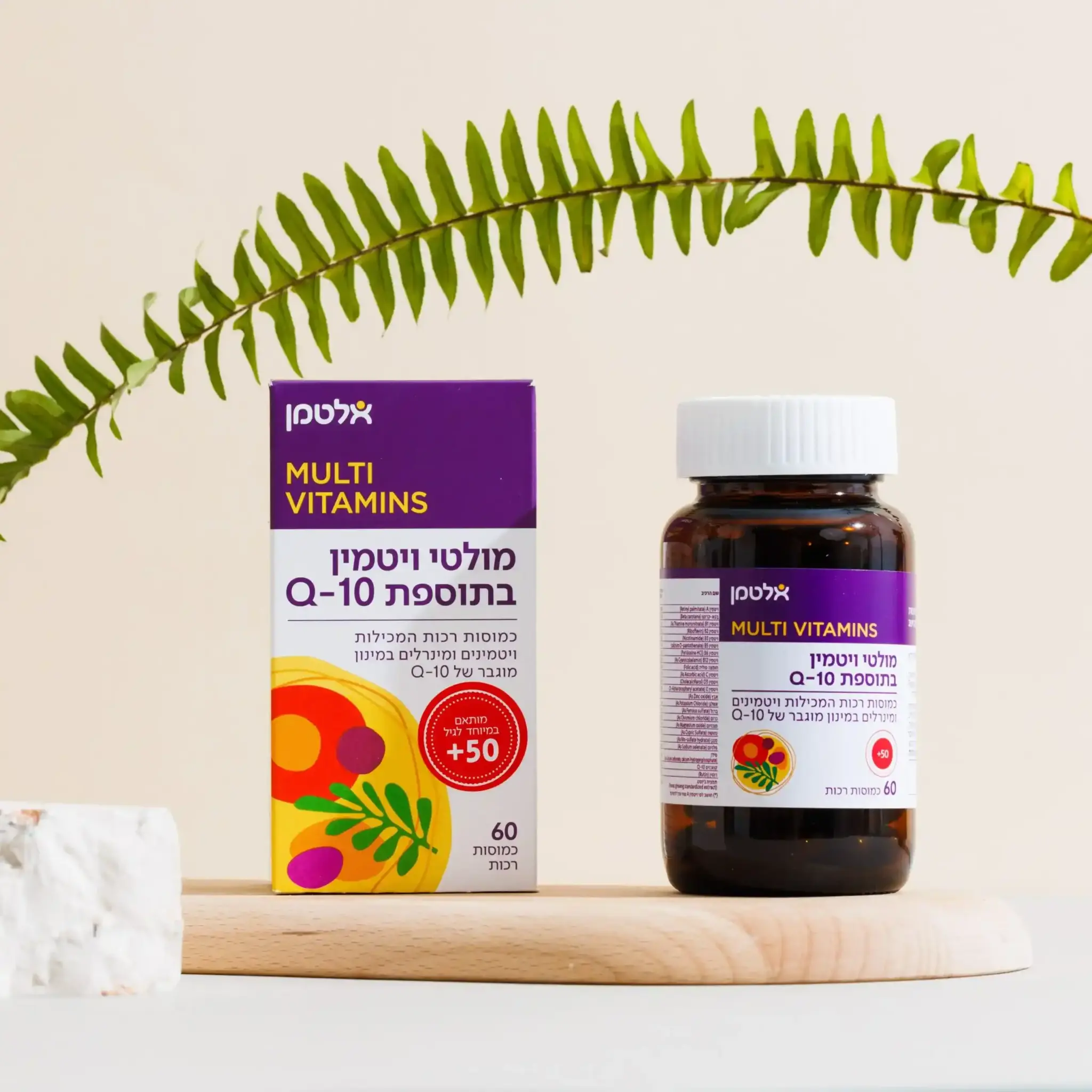 מולטי ויטמין ייעודי המותאם במיוחד לצרכים הגופניים הדרושים לנשים ולגברים בגילאי 50+ בתוספת קו אנזים Q-10 וג’ינסנג. להשלמה תזונתית המסייעת בשמירה על חיוניות, בריאות ואנרגיה!