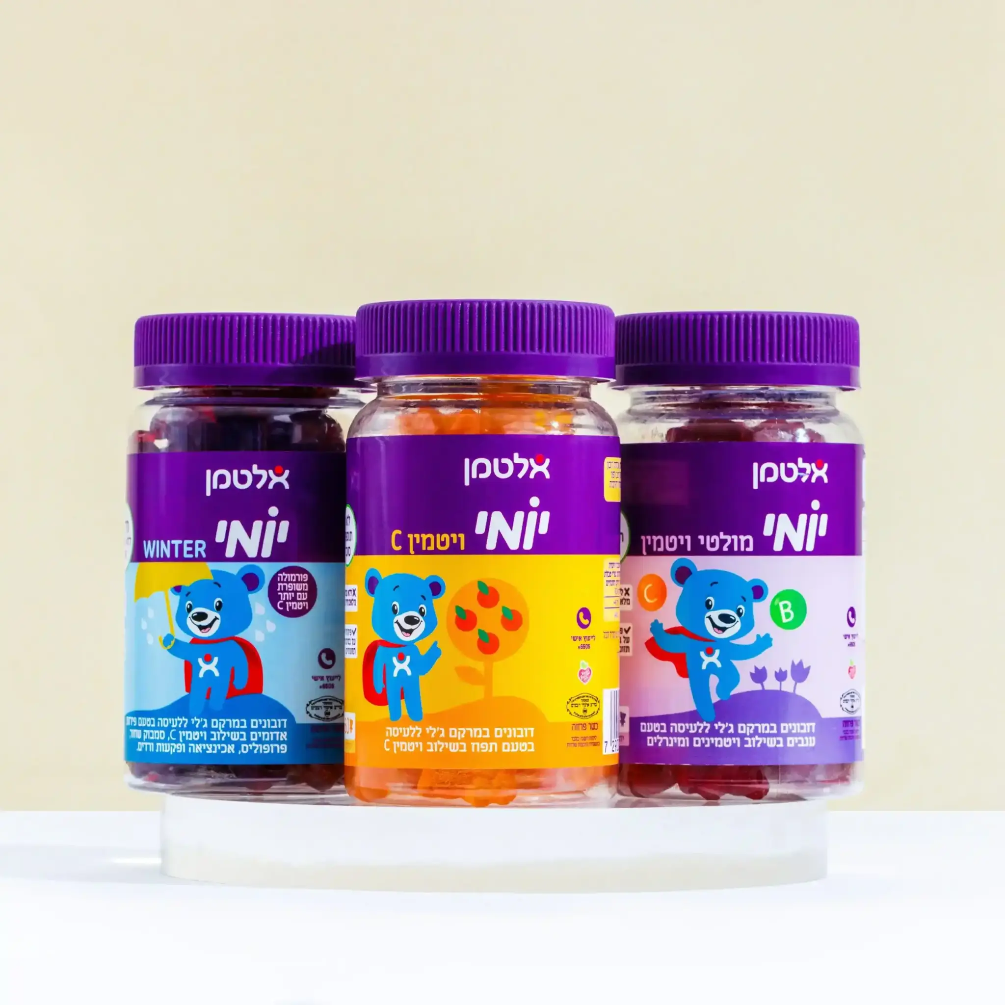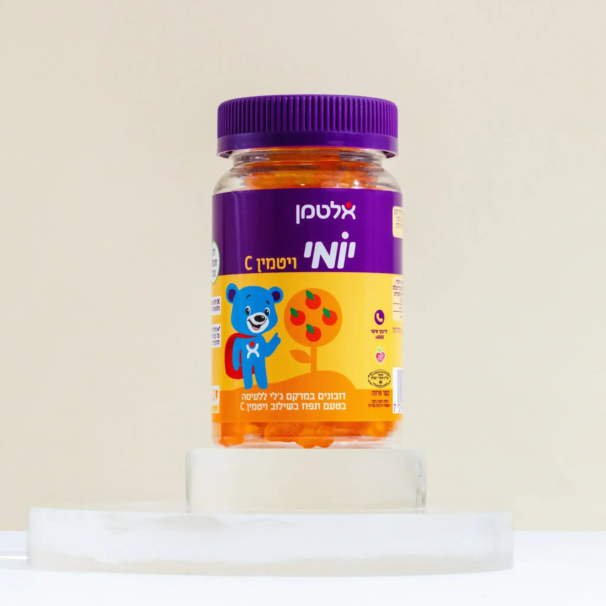 יומי תוסף התזונה האהוב על הילדים ללא תוספת סוכר ובטעם נפלא בפיתוח ייחודי על בסיס סיבים תזונתיים. -ללא תוספת סוכר. -ללא ממתיקים מלאכותיים. -ללא חומרים משמרים. 60 מ”ג ויטמין C בכל דובון.