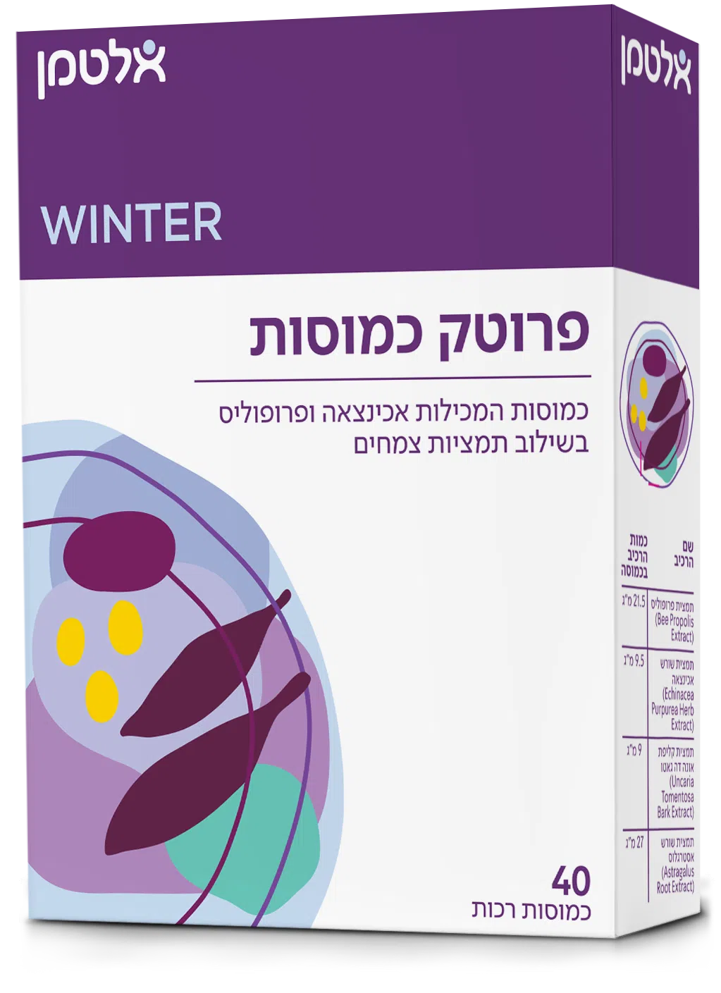 כמוסות רכות המכילות אכינצאה ופרופוליס בשילוב תמציות צמחים. מחקרים הראו כי הפרופוליס מכיל נוגדי חמצון חזקים, ותורם לחוסן הטבעי