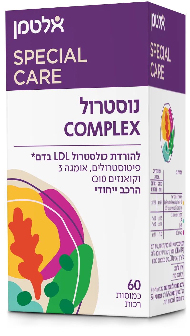 להורדת כולסטרול LDL בדם. מכיל מינון של פיטוסטרולים על פי המלצות בינלאומיות להורדת רמות הכולסטרול מכיל חומצות שומן אומגה 3 וקואנזים Q10 (60 מ”ג ליום)