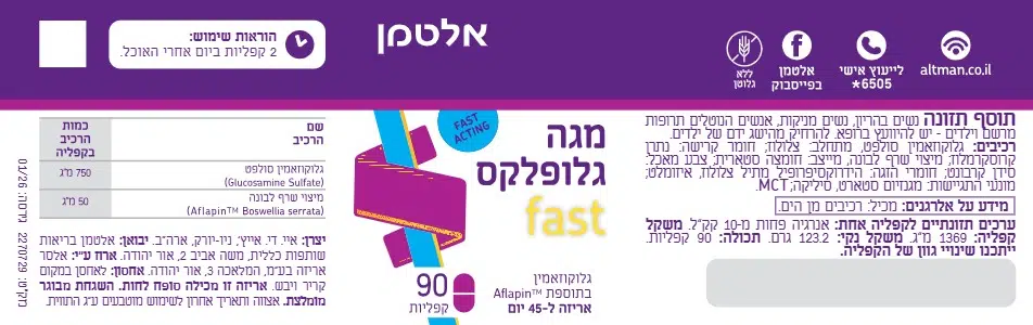 | גלוקוזאמין סולפט (Glucosamine Sulfate) | 750 מ”ג |