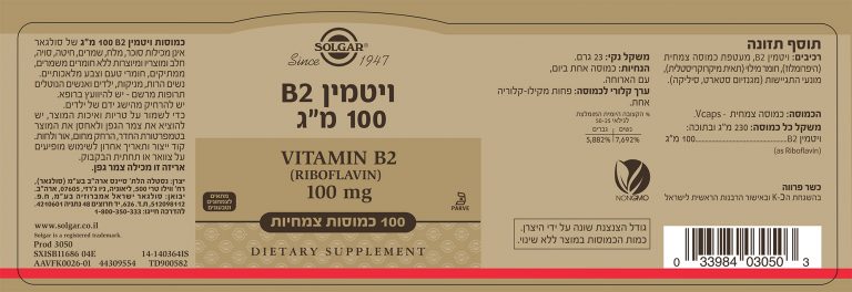 ויטמין B2 ריבופלאבין 100 מ”ג – סולגאר Solgar