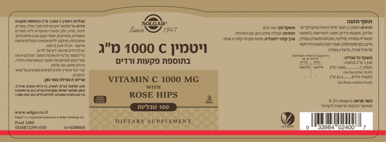 ויטמין C 1,000 מ”ג בתוספת פקעות ורדים – יתרונות